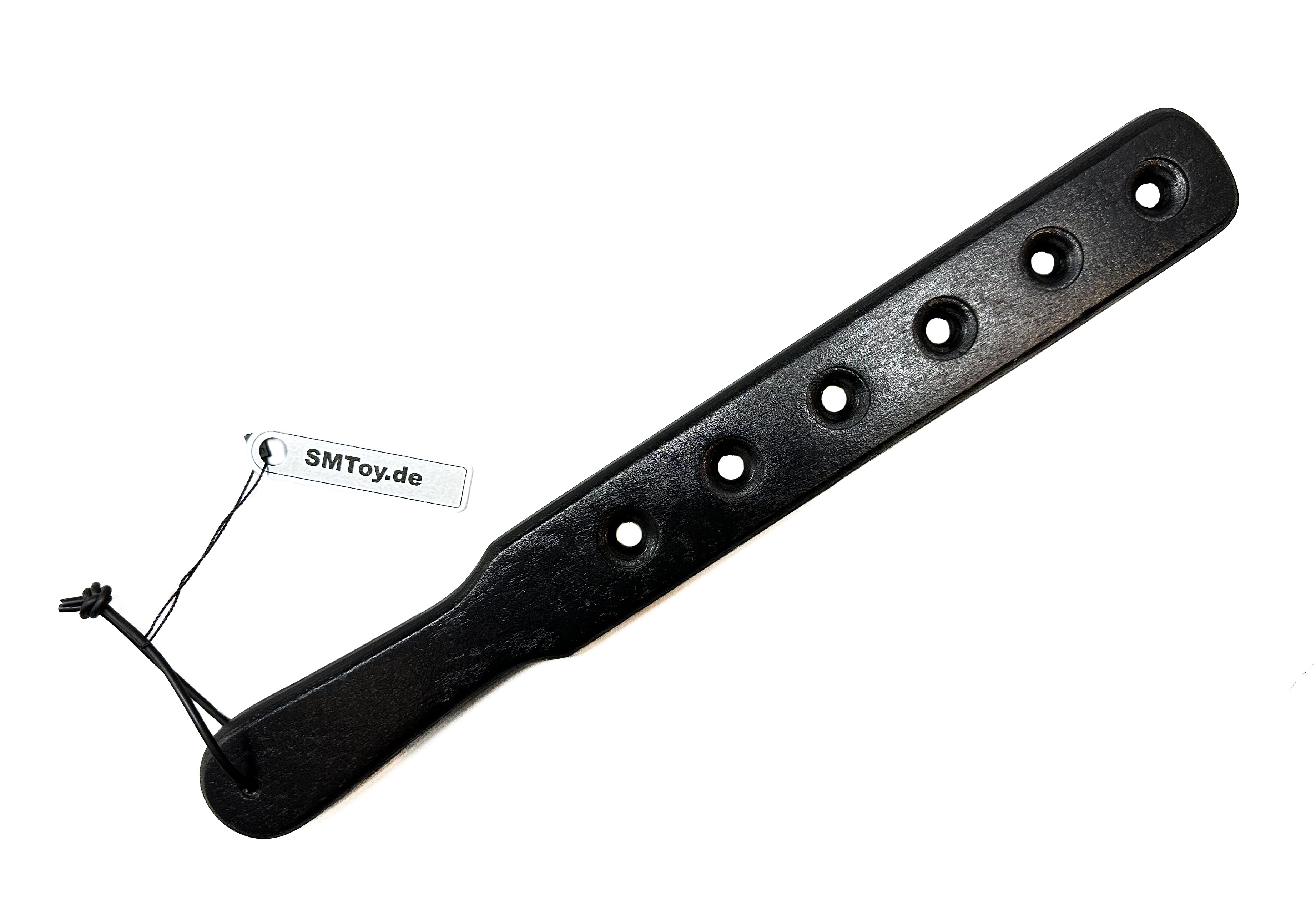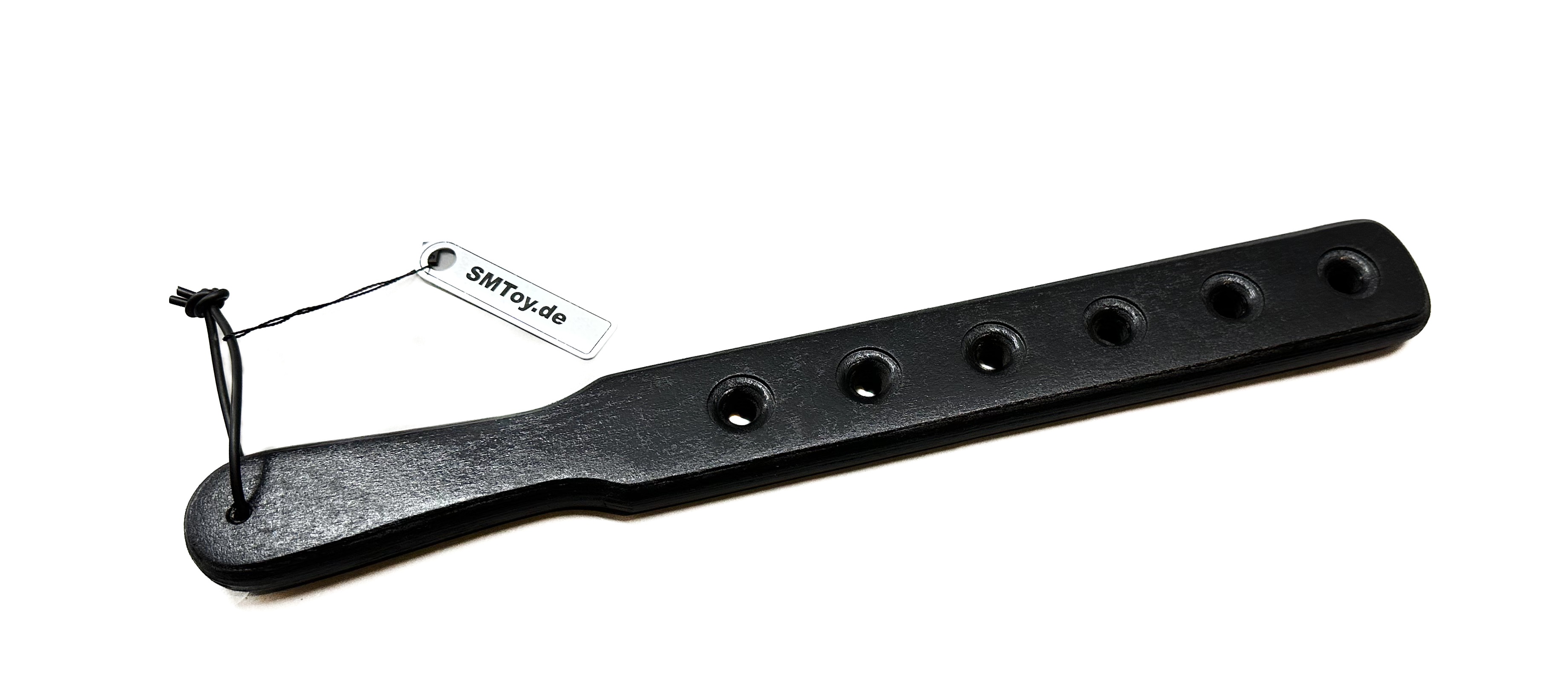 Paddle aus schwarz lackiertem, leicht angerautem Holz (Multiplex)