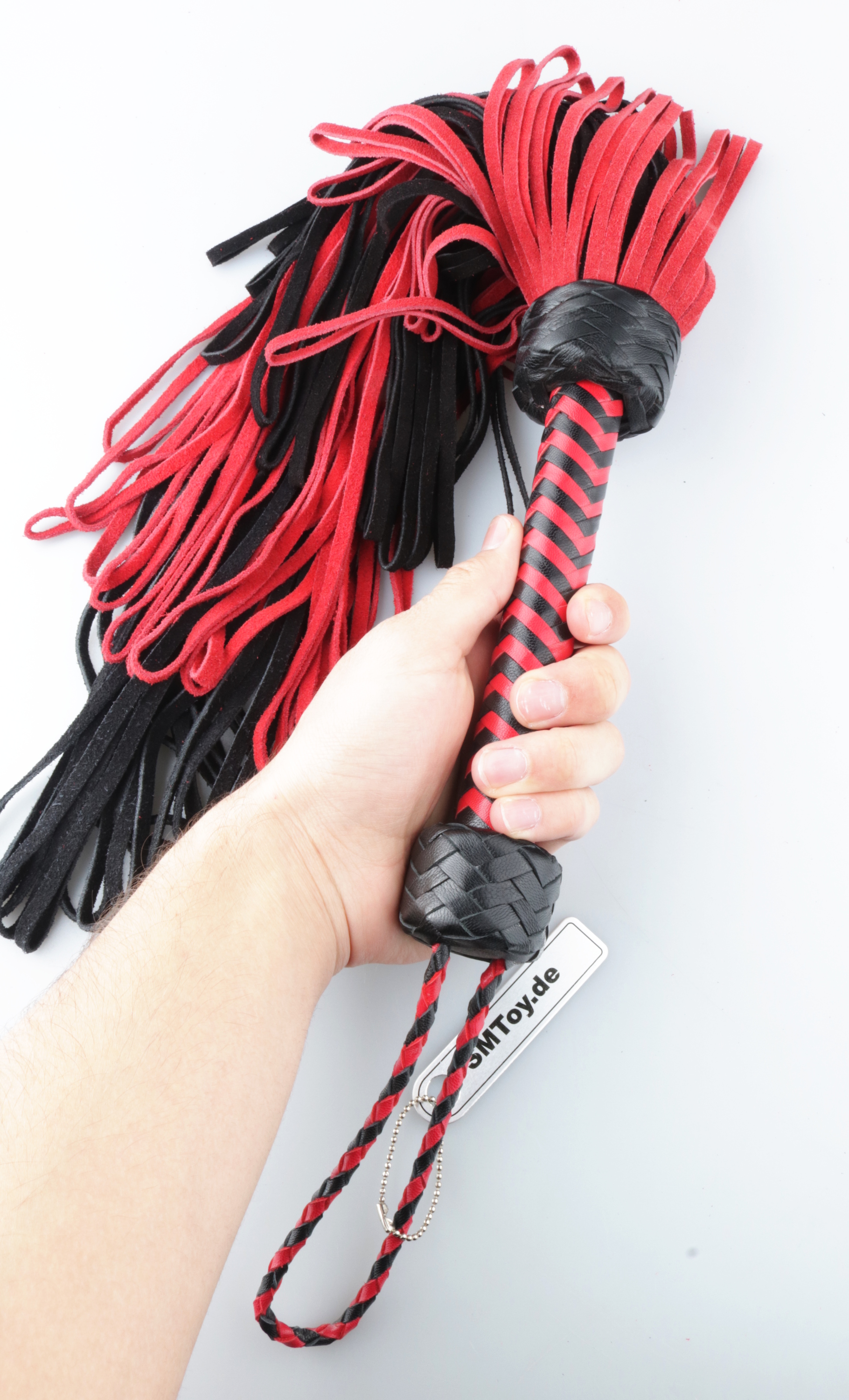 Flogger mit Loop-Striemen schwarz-rot