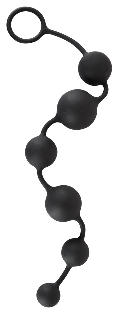 Schwarze Kugelkette mit sechs Kugeln von unterschiedlichem Ø (2,3-3,9 cm).