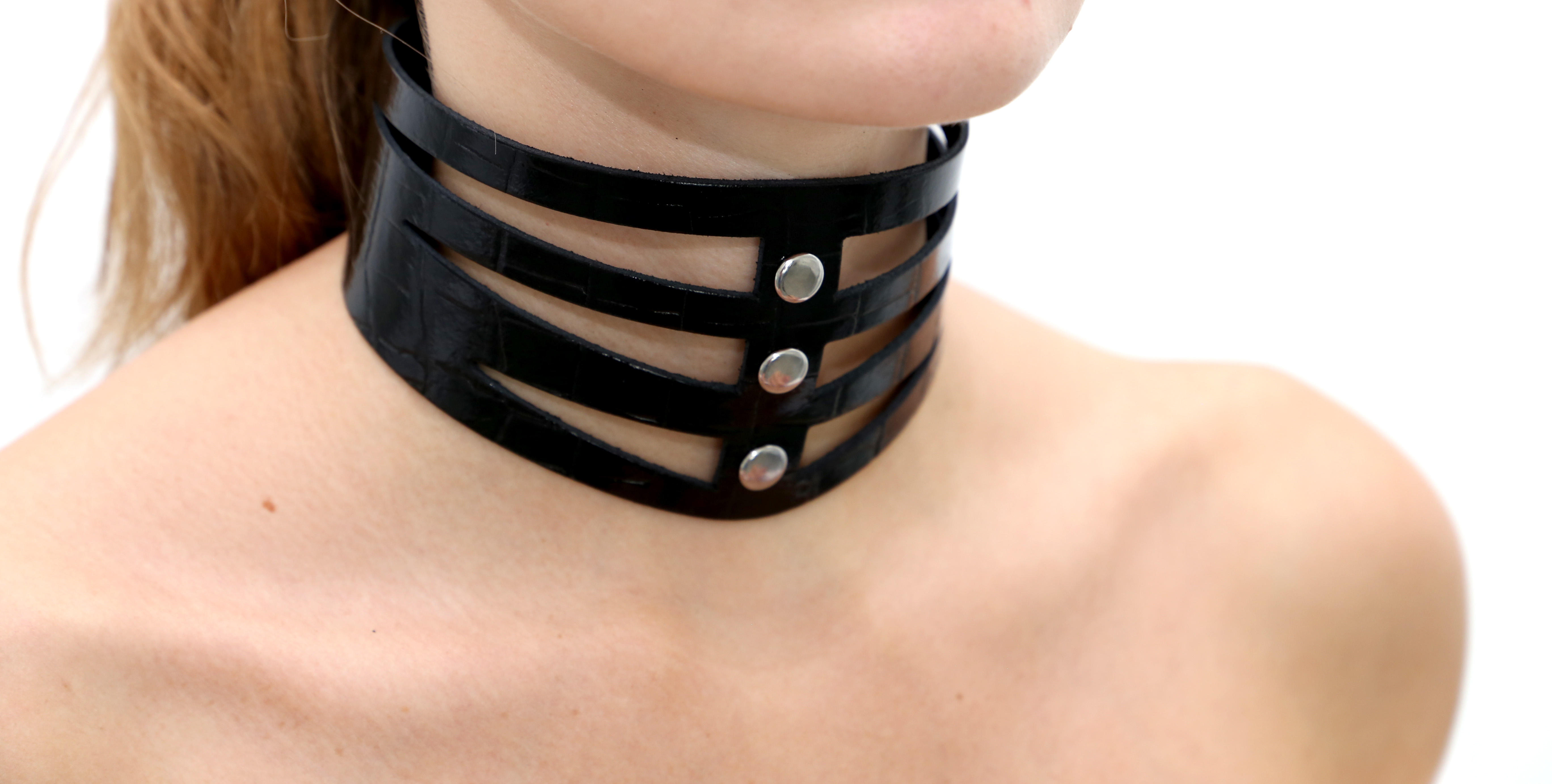 Lack Kroko Halsband "Riemchen Look"