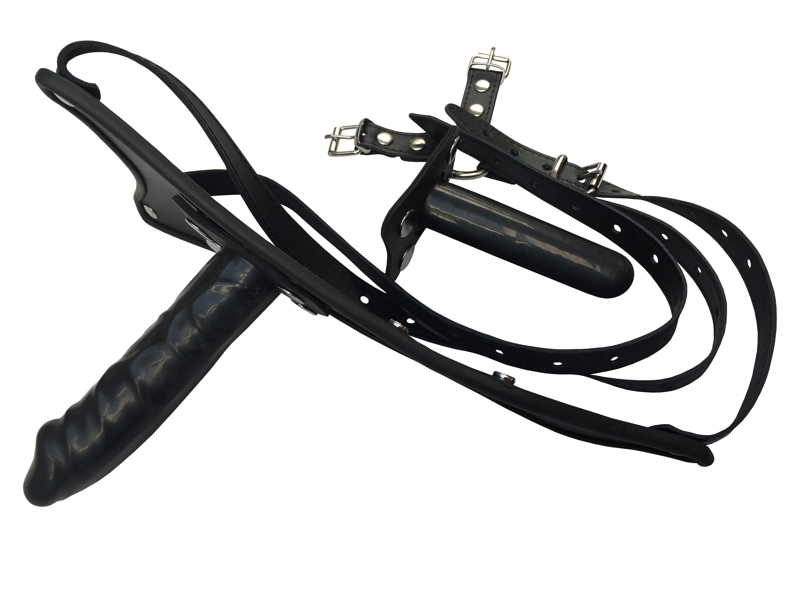 Leder Slip mit wahlweise einem oder zwei Dildos