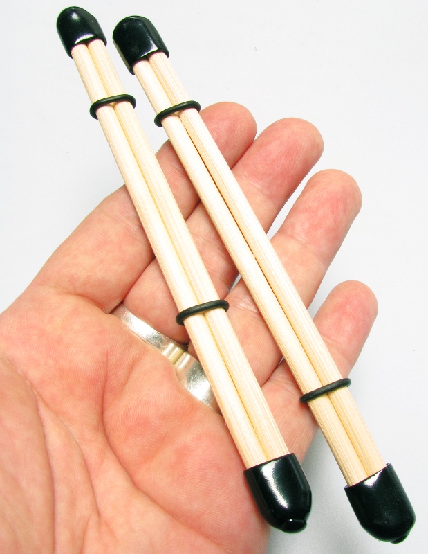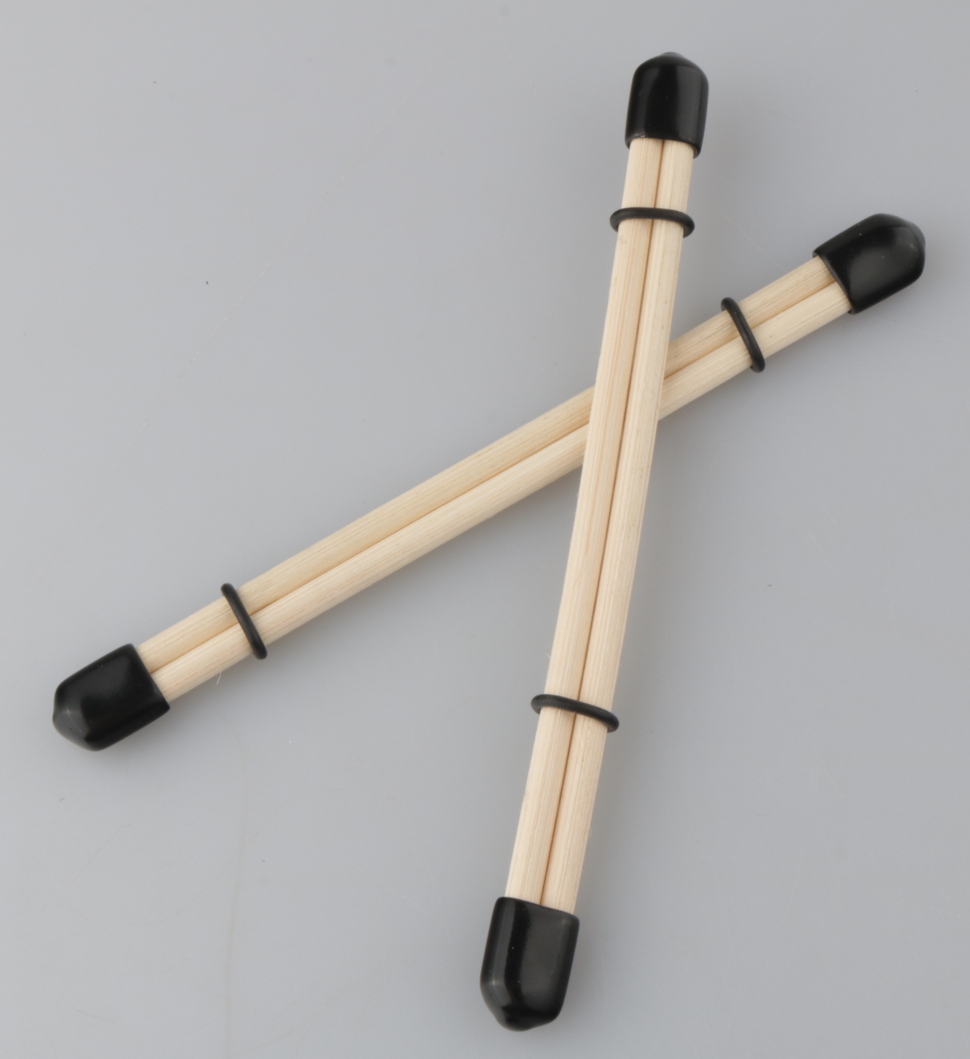 Mit Gummiendkappen und Gummiringen,