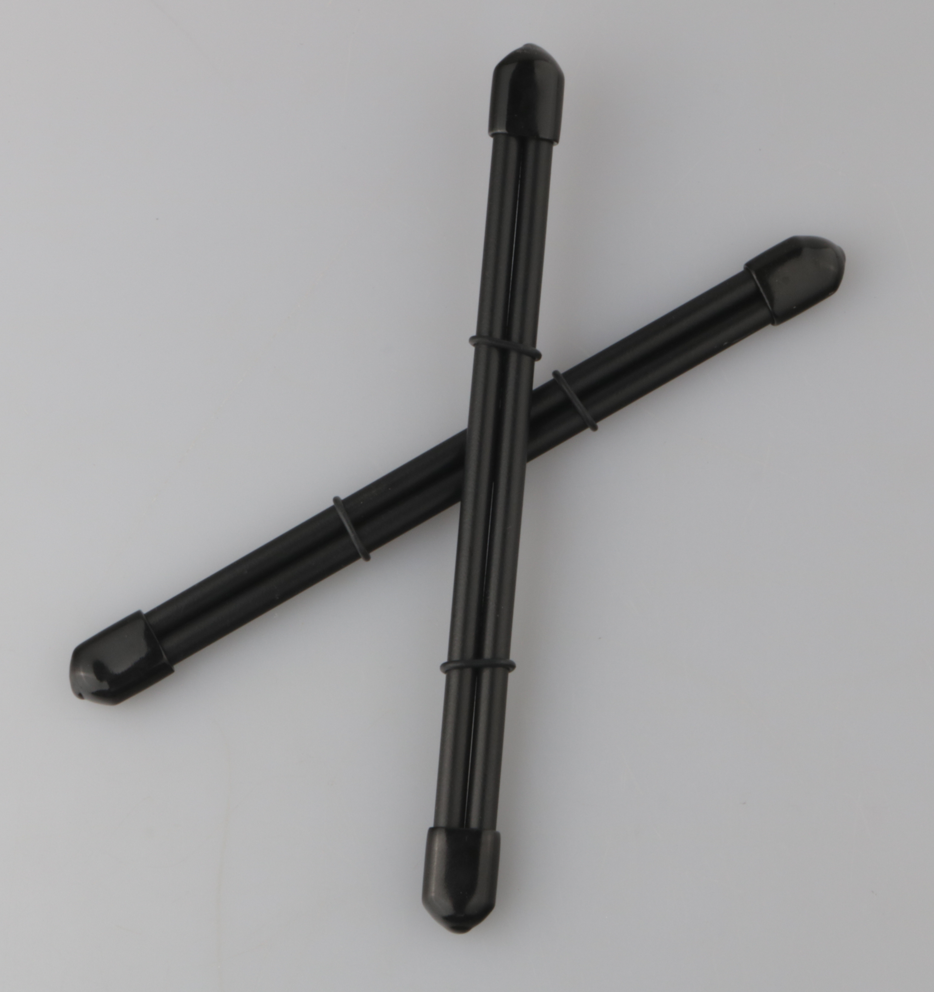 Mit Gummiendkappen und Gummiringen. Mit den Ringen wird die Intenssität reguliert.