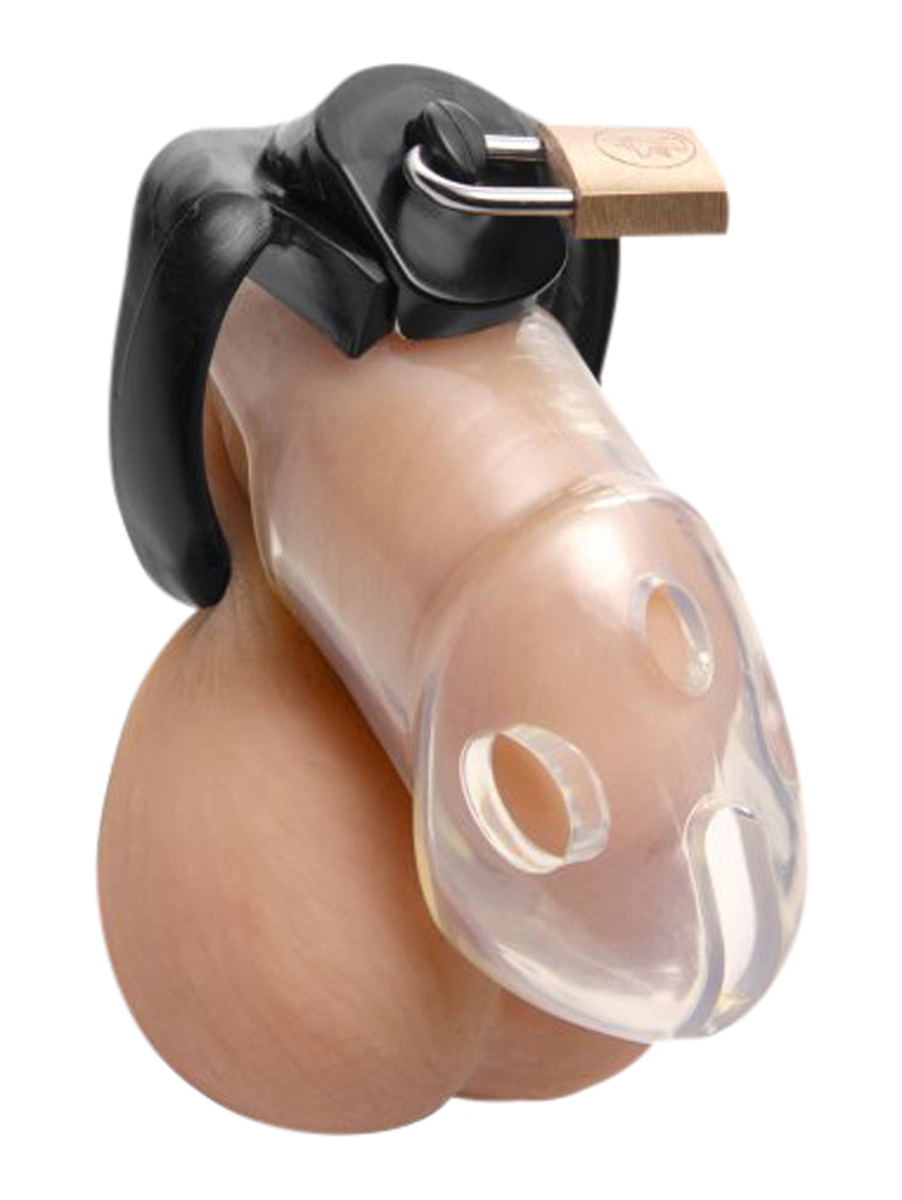 Mit diesem einengenden Spielzeug wird der Schwanz genau so lange eingesperrt sein, bis Sie sich zu seiner Freilassung entscheiden. Dieser gekrümmte Käfig ist einerseits verstellbar, aber auch sicher. Der Rikers Käfig ist robust und doch halb-biegsam, mit einem Zugang zur Harnröhre, der sich besonders beim langen Tragen als praktisch erweist. Dieser Keuschheits-Käfig wurde speziell dafür entwickelt, um ein Verrutschen der Ringe und jedwede Gefahr des Abrutschens zu verhindern. Der besonders sichere Verschlussmechanismus an der Oberseite verleiht diesem Spielzeug zusätzliche Sicherheit. Wählen Sie aus den drei verschieden großen Ringen den am besten sitzenden aus. Dieses Set beinhaltet einen Schwanzkäfig, drei abgestufte Ringe, eine besonders sichere Verschlusskammer und ein Schloss mit zwei Schlüsseln. Das verwendete Polykarbonat ist leicht und hypoallergen, das macht es perfekt für ein langes Tragen geeignet. Außerdem ist es haltbar, stabil und bruchfest.