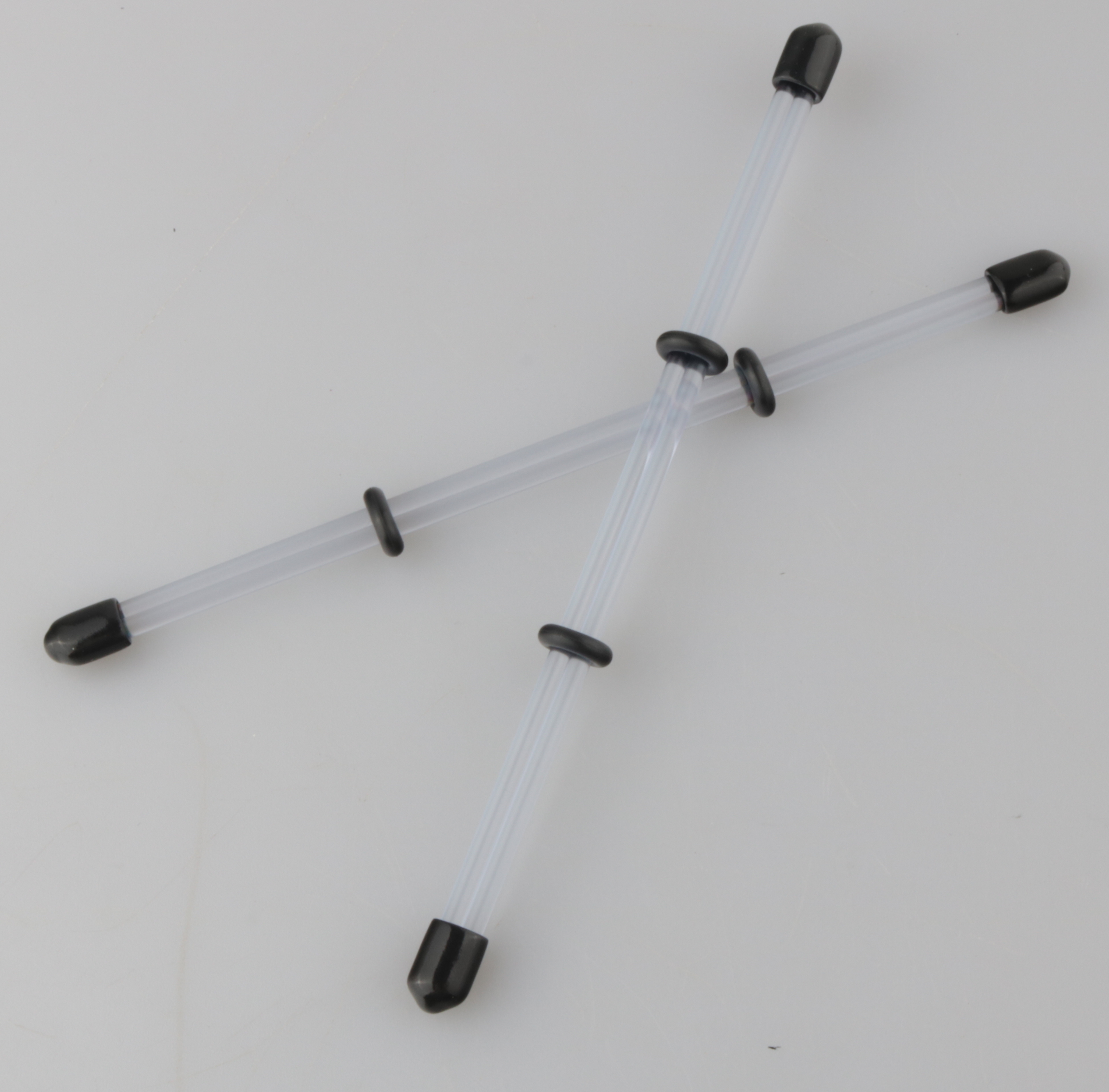 Mit Gummiendkappen und Gummiringen,