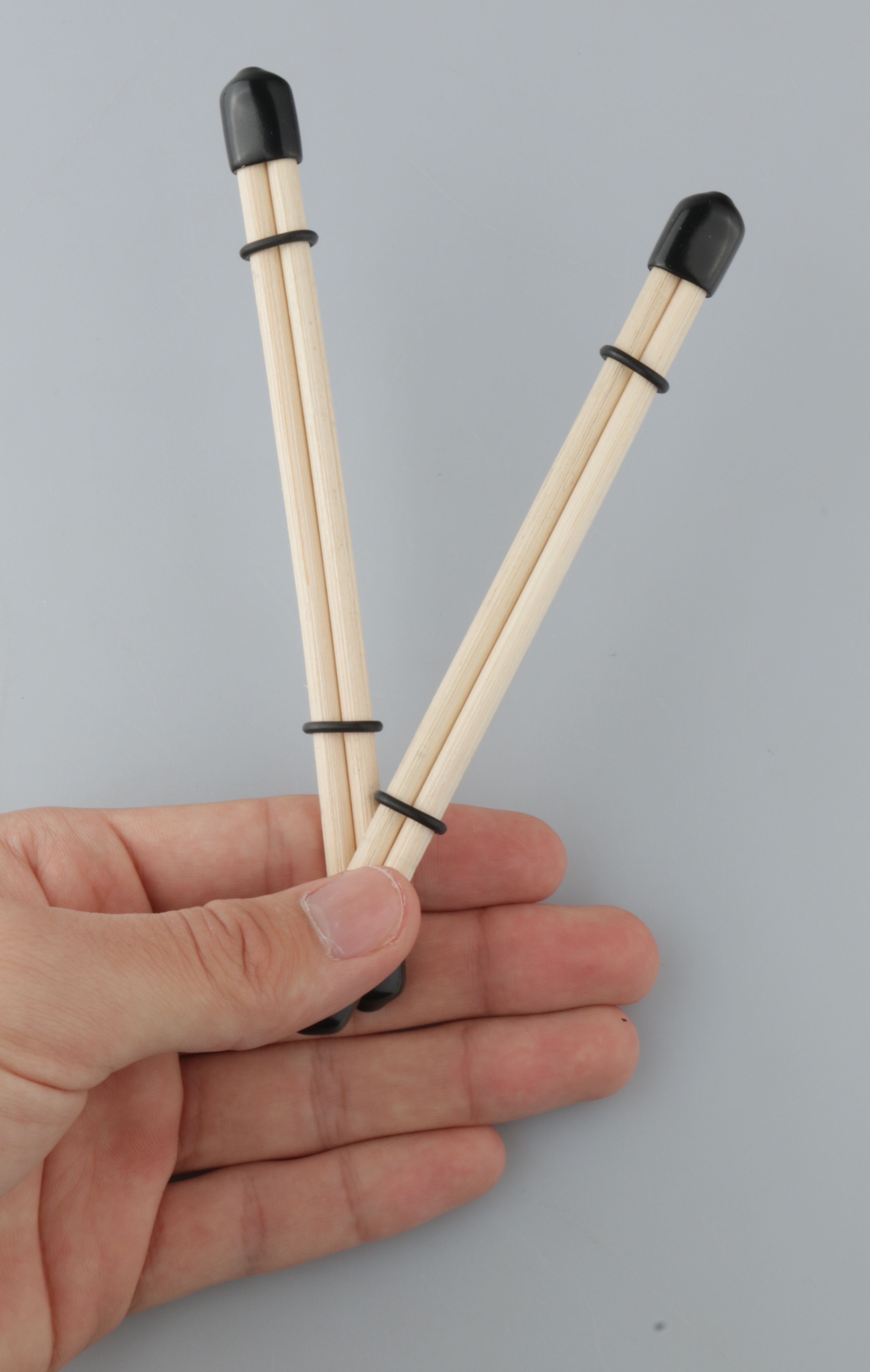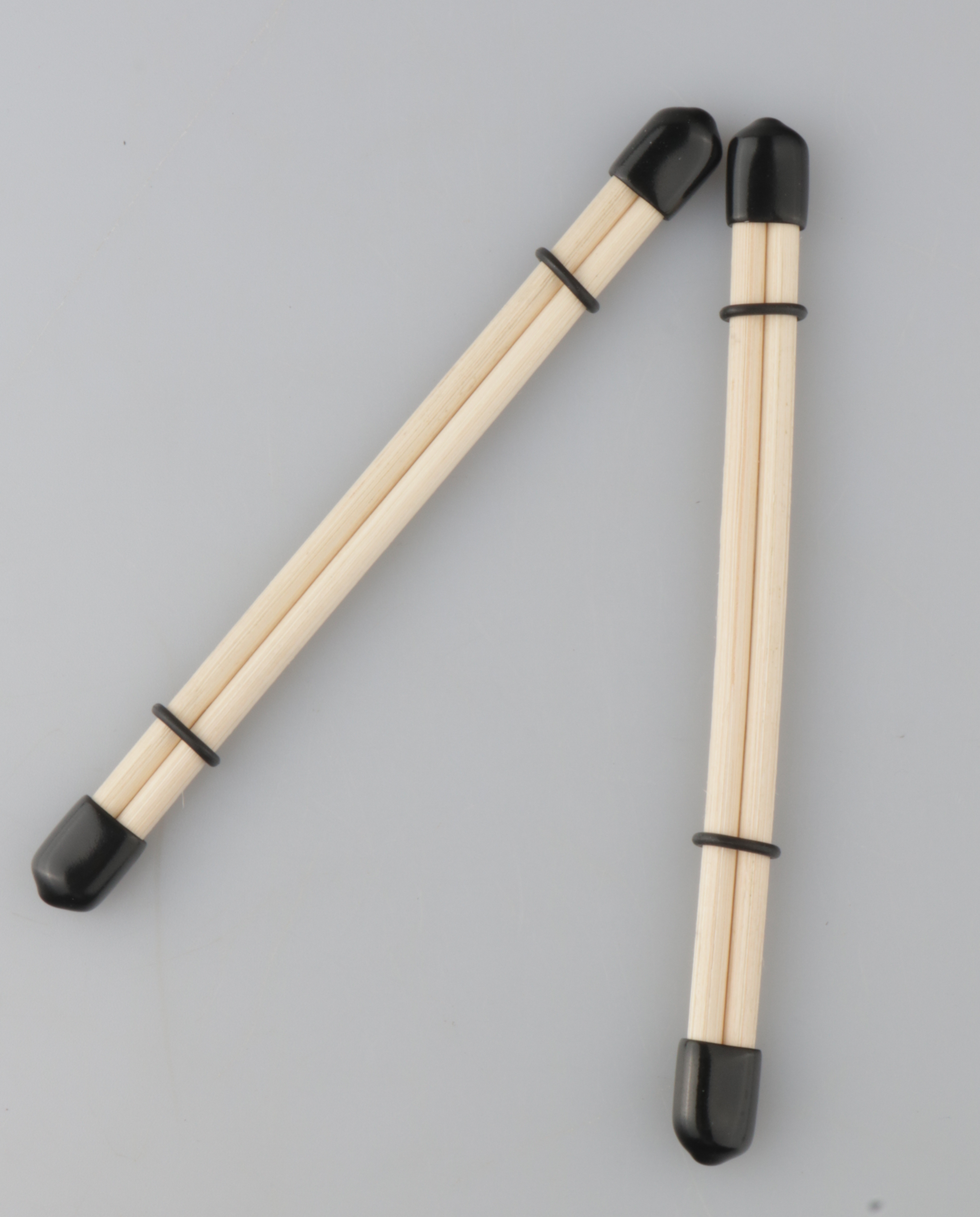Mit Gummiendkappen und Gummiringen,